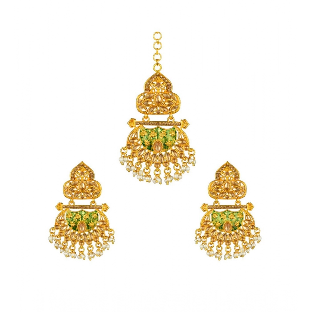 Women’s Rose Gold Plated Alloy Kundan Earrings & Mangtikka